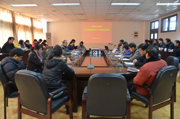 桂宁东指出,党的十八大是一次十分重要的大会,要把学习宣传贯彻十八大精神作为当前和今后一个时期的首要政治任务。为深入学习贯彻党的十八大精神,党委组织各总支书记、支部书记及各系(院)、部门党员负责人参加省委教育工委与国家教育行政学院联合举办的“学习贯彻党的十八大精神”远程专题培训,这对我们深刻领会十八大精神,推动我院掀起“学习贯彻十八大精神”热潮是极好机会。