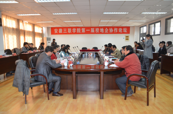 为了进一步加强校地企合作共赢,推进协同创新,深入探索校地企联合培养人才工作模式,提升高校的人才培养服务地方经济建设和社会发展的实效,12月12日,安徽三联学院第一届校地企协作论坛隆重召开。省教育厅人力资源和社会保障厅、省教育厅大中专毕业生就业指导中心、合肥市经开区人事劳动局等单位领导、合肥美菱股份有限公司等八家企业嘉宾和我院9个系(院)的常务主任和负责就业工作的相关人员共40余人出席会议。院长助理姜发根主持论坛。
