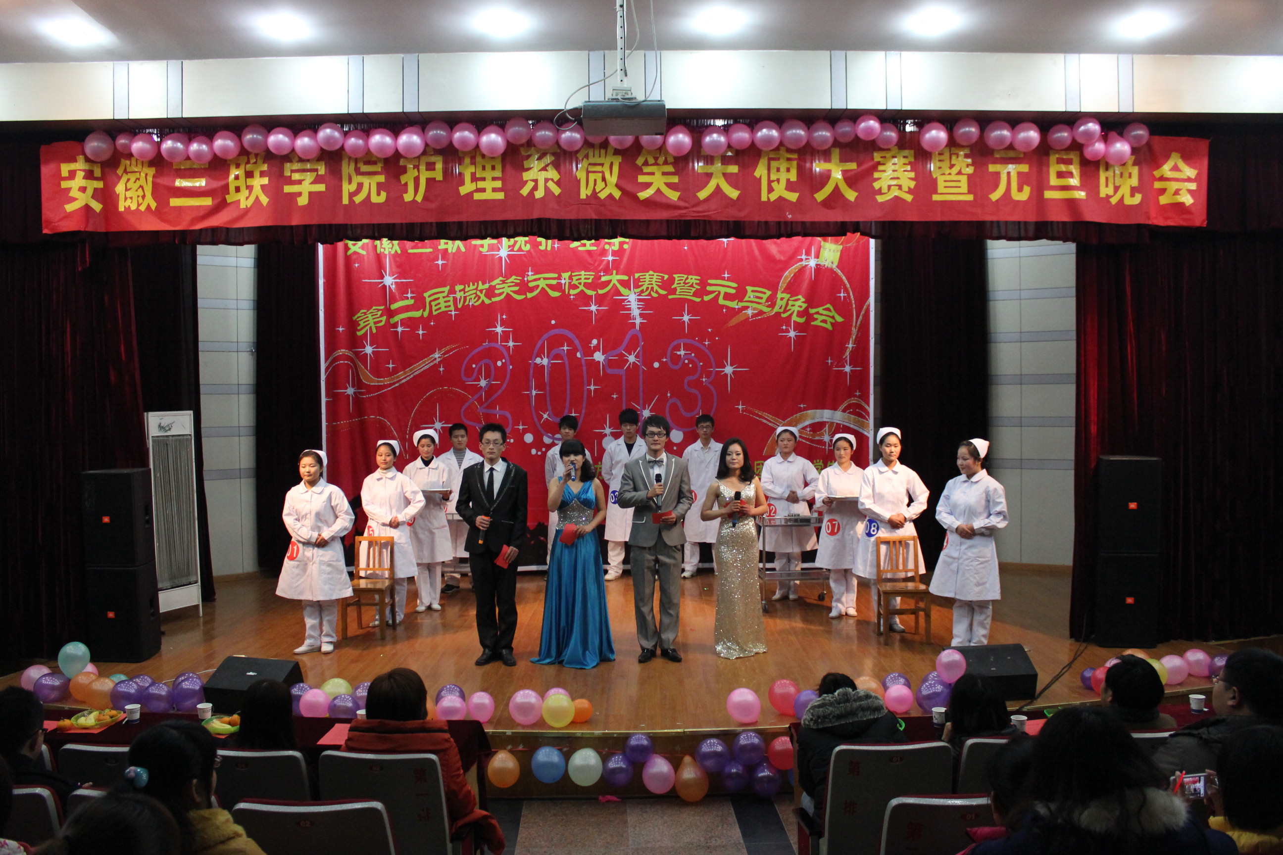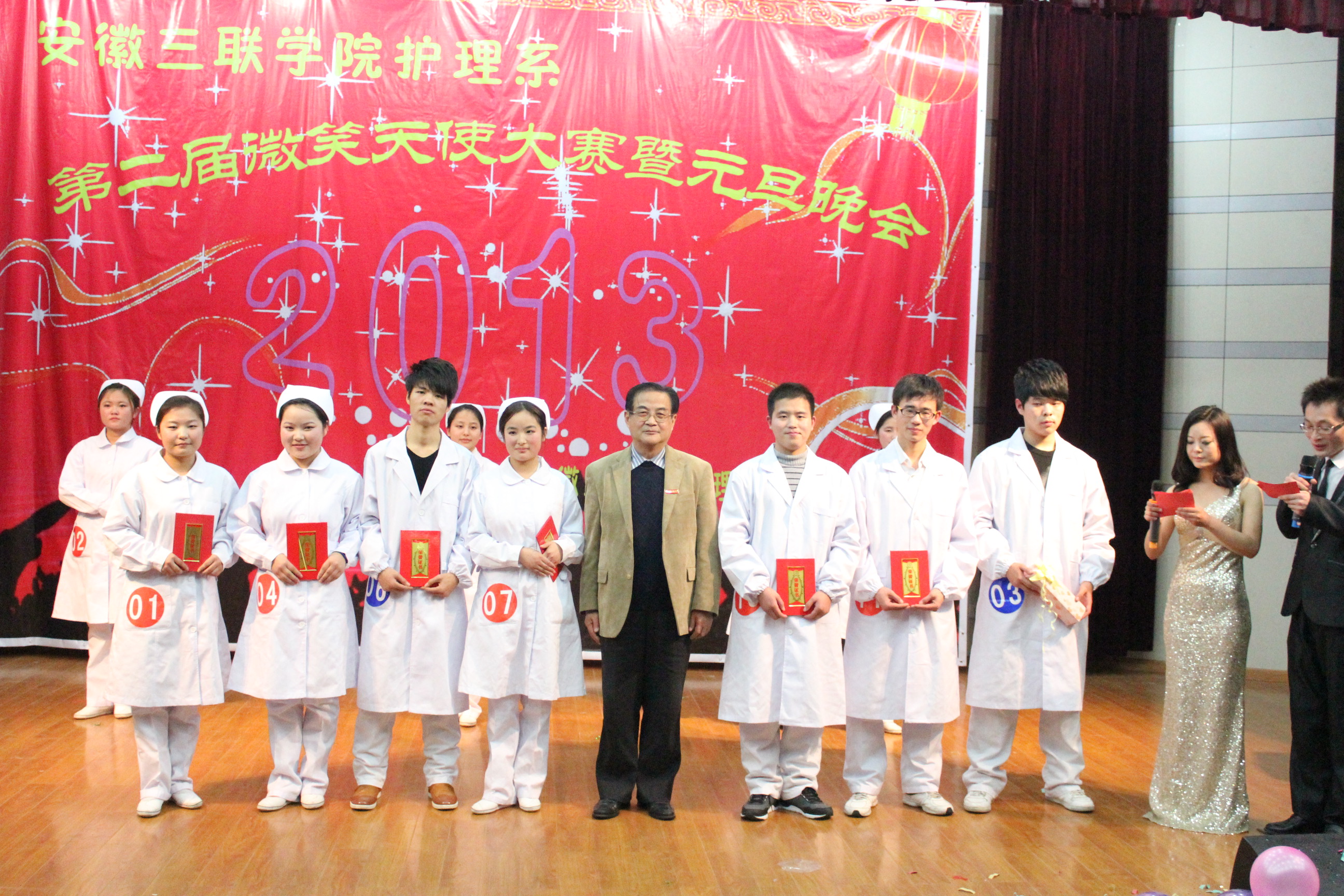 12月20日晚,三联学院二校区学术报告厅灯火璀璨,歌声飞扬。护理系 “第二届微笑天使大赛暨2013元旦文艺晚会”在此隆重举行。三联集团总裁、院长金会庆,三联教育集团总裁、学院董事长余皖生,常务副院长易佑民、党委副书记赵延铸等领导莅临观看了晚会。