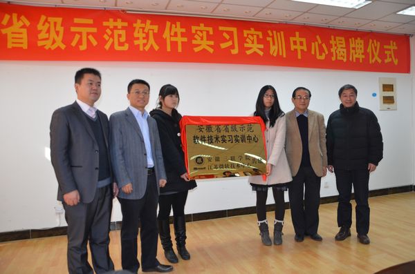 12月19日,与江苏微软技术中心合作建立的安徽省级示范软件实习实训中心在我院隆重揭牌。院领导易佑民、赵延铸,江苏微软技术中心领导李世保、许建军共同为中心揭牌。