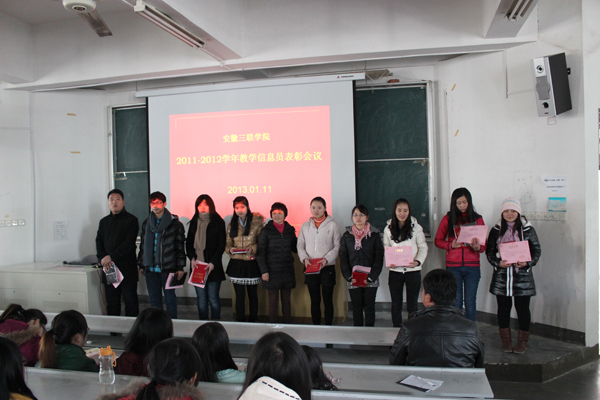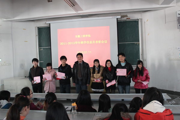 为调动学生教学信息员的积极性, 1月11日中午,学院召开2011~2012学年优秀教学信息员表彰会议,对全校59名表现突出的教学信息员和8名教学信息站站长进行表彰。院长助理姜发根及质量管理科相关人员出席会议。来自各系(院)的100多名学生教学信息员和信息站站长参加了会议。
