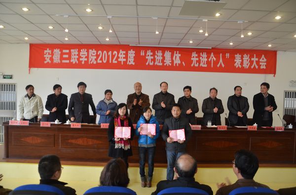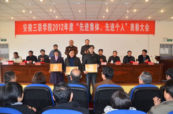 副院长秦永元、张克仁,党委副书记鲁先长,院长助理姜发根分别宣读了 “学院先进、扁平化管理”,“平安校园”,“新闻宣传工作”,“就业实训工作”表彰文件。大会共表彰2012年度学院先进集体5个,先进个人41名,扁平化管理优秀单位3个;年度创建平安校园先进集体5个,先进个人15名;年度新闻宣传先进集体3个,先进个人3名;年度就业实训先进集体4个,先进个人12名。