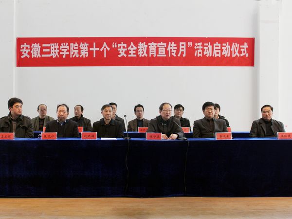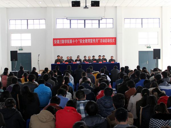 启动仪式由党委书记桂宁东主持。赵延铸副书记作动员讲话,他指出,安全稳定工作是学校工作的头等大事,关系到学校发展的大局,每年开展的“安全教育宣传月”活动是重要的举措。他对此次活动提出三点要求:1、高度重视,齐抓共管。要从维护校园安全稳定的大局出发,增强政治责任感和紧迫感。目前,正值全国“两会”召开期间,要把全国“两会”期间维护学校安全稳定摆在开学工作的突出位置,高度重视和开展好这项活动。要广泛发动全体教职工,重点是学生,特别是新生积极参与安全教育宣传月活动;要充分发挥团学组织、辅导员和学生干部的各自作用,分工协作、密切配合,确保活动扎实开展,落地开花。2、科学安排,统筹兼顾。结合当前学院实际,要以强化安全意识,提高防范能力为重点。同时,要把安全教育与创建“平安校园”活动结合起来,进一步推进安全工作目标管理;与查改隐患结合起来,及时有效进行安全隐患排查整改;与宿舍安全整治结合起来,强化安全措施,创建文明宿舍;与开展校园文化活动结合起来,使学生在寓教于乐、形式丰富的活动中掌握安全知识;与师生安全培训结合起来,不断提高师生应对各类公共安全事件的能力;与班风、学风建设结合起来,促进学生良好生活、行为习惯的养成和文明素质水平的提高。3、狠抓落实,力求实效。按照“谁主管、谁负责”的原则,认真落实安全稳定责任制。切实履行教育职责,扎实开展活动。深入开展矛盾纠纷、安全隐患排查化解工作,加强网络舆情管理,做到重在认真、重在教育、重在建设、重在管理、重在落实,思想认识到位、责任落实到位、教育力度到位、工作督查到位、整改措施到位。赵延铸副书记最后指出,我们要以第十个“安全教育宣传月”活动为契机,明确责任,把安全教育、安全管理的各项措施落到实处,真正实现统一思想、齐抓共管,全员讲安全、全程重安全,全方位保安全的安全工作新局面,用我们在安全月所取得的优异成绩为实现安徽三联学院新的腾飞贡献力量,以实际行动迎接全国“两会”的胜利召开。