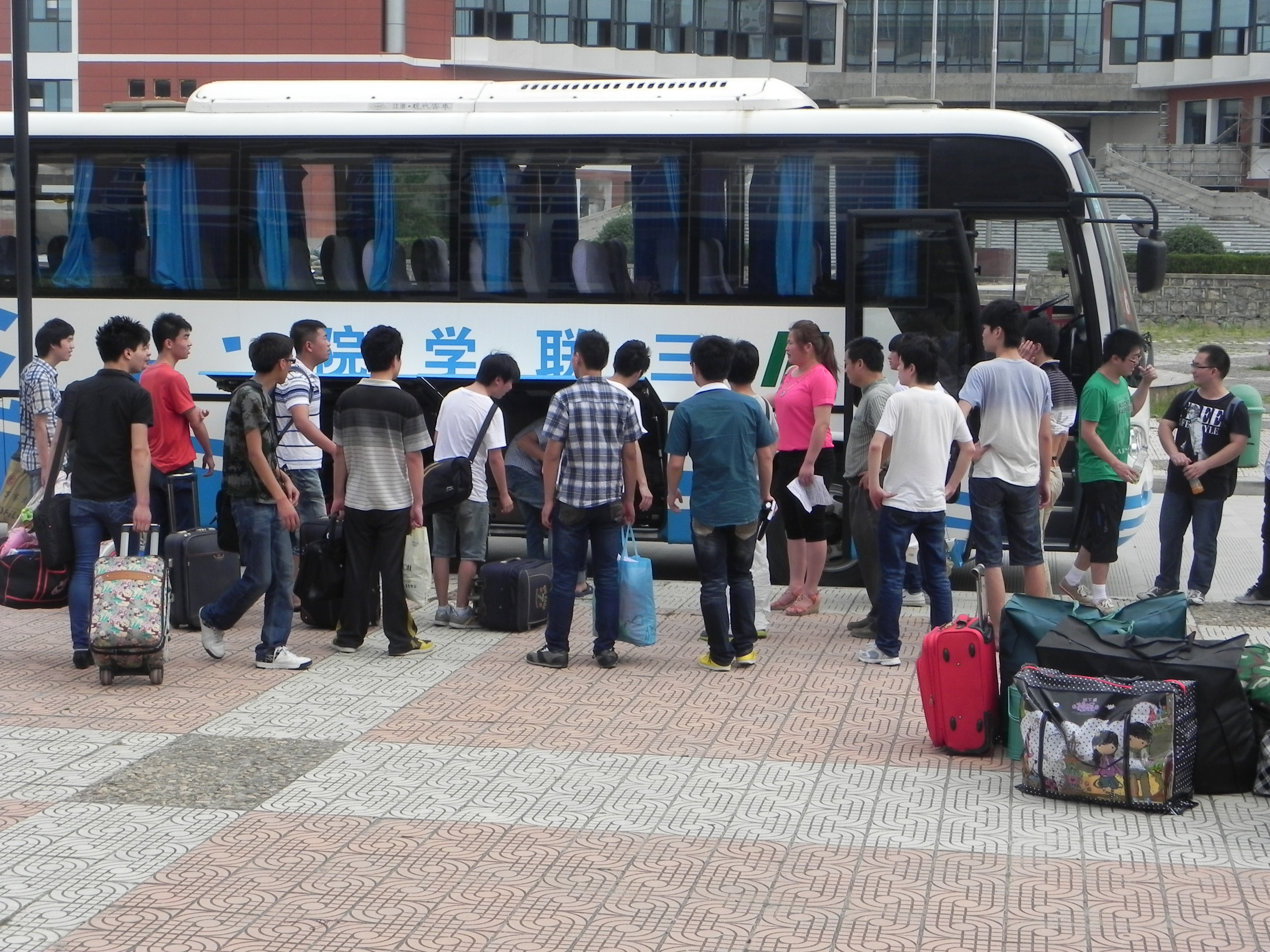 学子们等待离校班车