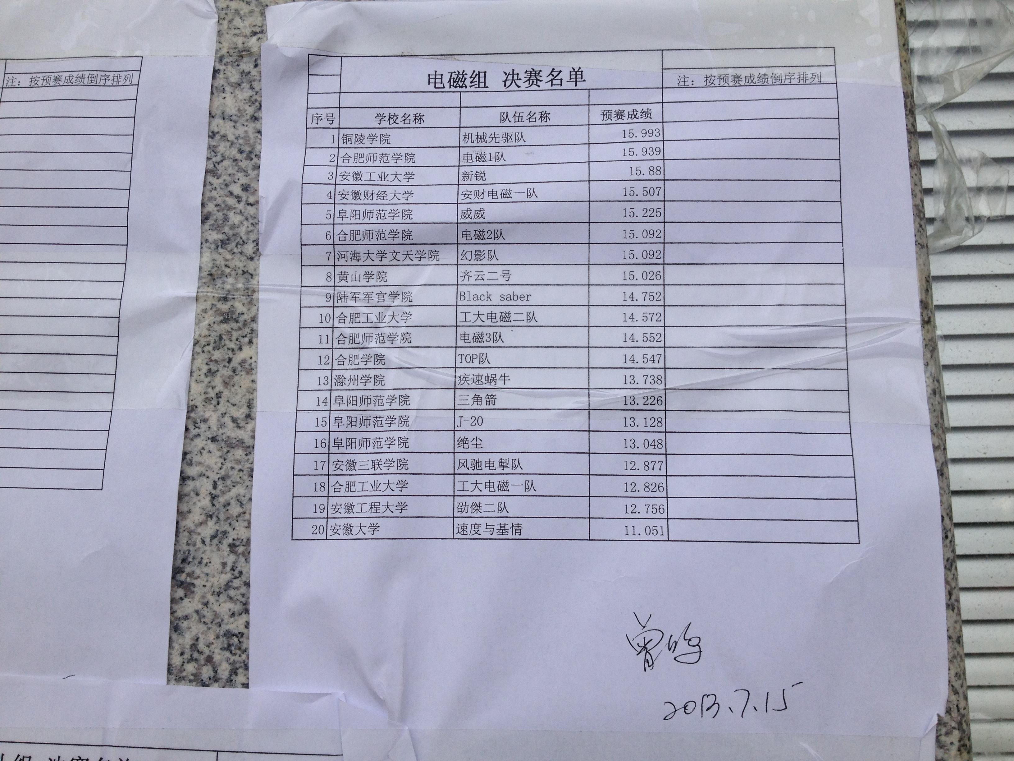 第一天 预赛结束排名