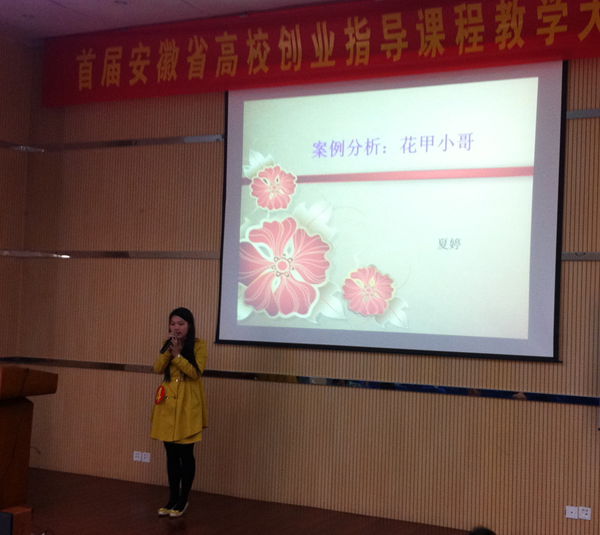 11月2日—3日,“首届安徽省高校创业指导课程教学大赛”在安徽医学高等专科学校隆重举行。我院夏婷老师以学院创业学子“花甲小哥”为例进行了精彩演讲,最终荣获三等奖,学院同时荣获“组织奖”称号。