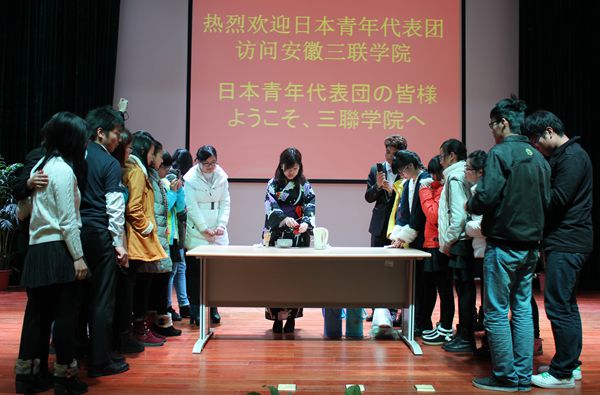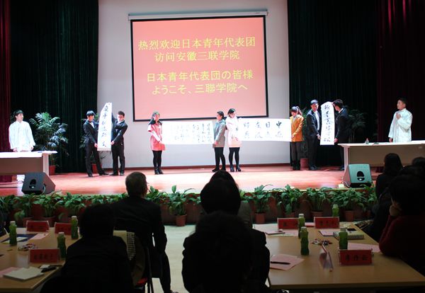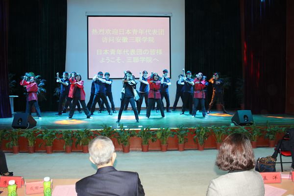 下午15:00,在我院图书馆多功能厅举行了中日青年交流会,院领导鲁先长代表学院致欢迎词,并与成田一郎团长互赠了礼品。交流会现场,日本各界杰出青年代表与我院优秀青年学子表演了富有特色的文艺节目,现场一片欢声笑语。