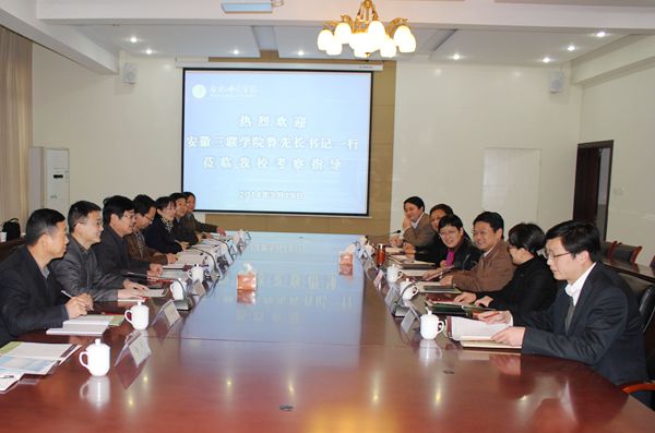 3月19日,党委副书记鲁先长一行8人来到合肥师范学院,该校党委副书记邱克主持召开交流座谈会就该校思想政治教育、校园文化建设、学生管理与服务、党团建设等方面工作情况作了介绍。该校相关部门负责同志结合本部门工作实际,具体介绍了各自以评促建,提升办学内涵的具体做法。