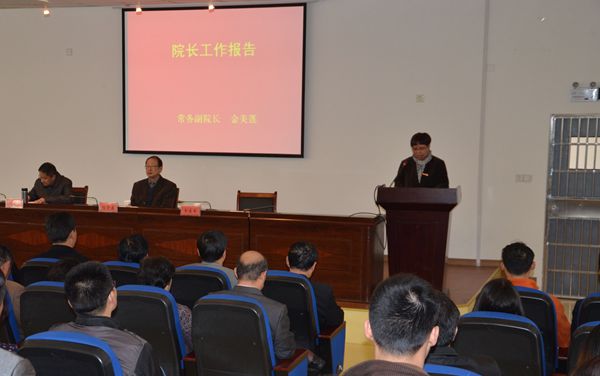 会上,常务副院长金美莲受金会庆院长委托,代表学院作了题为《抓改革,提质量,促内涵,努力构建高水平应用型本科高校》的工作报告。报告从十个方面回顾总结2013年所取得的改革、发展的成绩,指出存在的问题。报告还就2014年学院重点工作特别是迎评促建工作进行了部署。