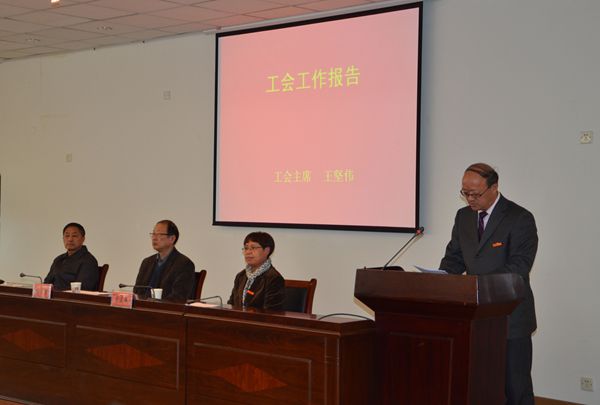 院工会主席王坚伟代表第二届工会委员会向大会作工作报告。