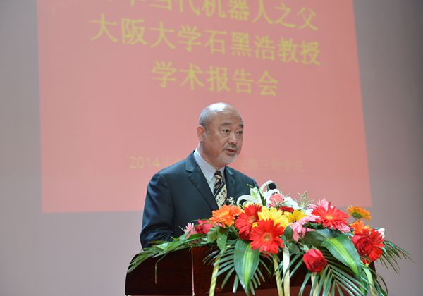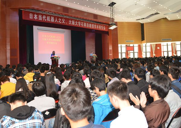 15日上午,石黑浩教授实地考察了安徽三联学院,并在多功能厅作了题为“现代机器人技术及其应用”的学术报告。院长金会庆教授致欢迎词,安徽省科协副主席、副院长宋扬博士主持报告会。省科技厅高新技术发展及产业化处主任科员王克、合肥市科技局国际合作处处长吴剑应邀参加报告会。