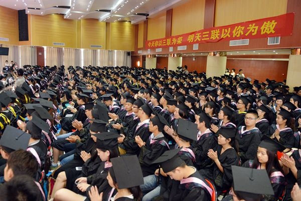 典礼结束后,出席领导与全体毕业生在图书馆广场合影留念,随着一张张图片的定格,三联的校园里又留下了一批学子的美好回忆,相信这些朗朗的书声、同窗的友情、难忘的初恋、青涩的记忆、如歌的岁月都将挥之不去,也坚信三联学院永远是广大学子的家,广大学子也永远是母校的骄傲和牵挂。(撰稿:王悦 摄影:刘兵生 周新 邱彦铭 编辑:邱彦铭)