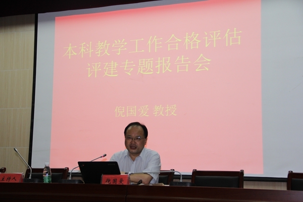 为进一步推进我校的评建工作,7月25日上午,学校“本科教学工作合格评估专题报告会”在图书馆一楼学术报告厅隆重举行,特邀铜陵学院副校长倪国爱教授来校作报告。校党委书记桂宁东、常务副校长金美莲等校党政领导出席报告会。全校所有管理人员及骨干教师等300余人参加了会议。报告会由校党委副书记鲁先长主持。