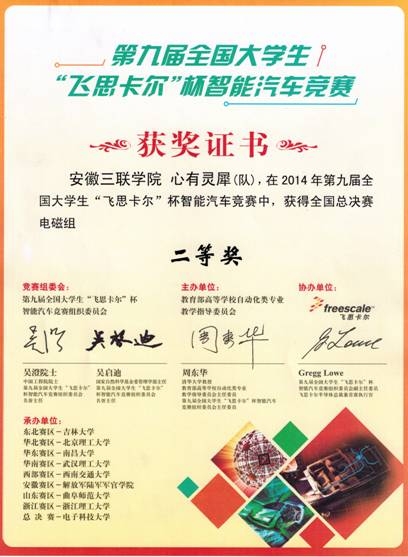 8月23日,第九届“飞思卡尔”杯大学生智能汽车竞赛全国总决赛在成都电子科技大学落下帷幕。我校晋级总决赛的电磁组“心有灵犀”队获得全国二等奖的优异成绩。(撰稿:孙宝法 梁月放 摄影:徐涛 编辑:邱彦铭)