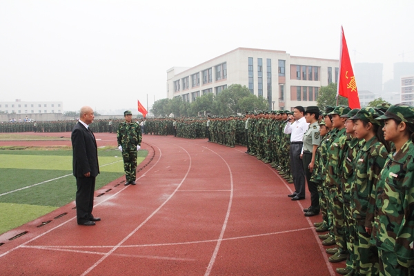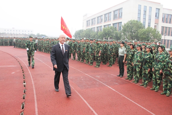 校长金会庆教授作总结讲话。金校长首先向来访嘉宾及负责军训的首长、教官表示感谢,对新生在军训过程中的认真和坚韧表示欣慰。他介绍了学校是教育部第一批、安徽省第一所民办院校,经过十八年不懈努力,学校得到了快速发展,尤其是升本之后,取得了斐然的成绩。金校长对五个教科研及服务中心进行了详细的解说,强调了“强化育人、科学管理、突出服务”的工作思路,坚持“以学生为本”的指导思想。最后,金校长对2014级新生提出要确立目标、把握节奏、学会选择、懂得取舍、学会感恩、勇于承担的殷切要求。