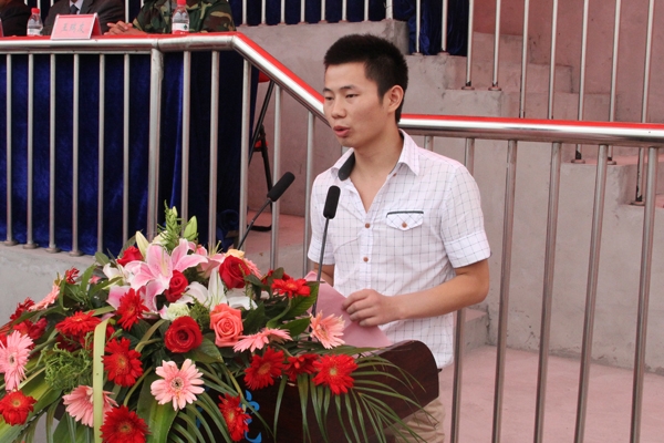 揭牌仪式后,我校2010届人文经济学院毕业生尚超作为校友代表发言,表达了对母校培养的感恩,为母校硬件建设不断加强、办学特色不断凝练、内涵建设不断提高等感到自豪和骄傲,并祝愿母校桃李满天下,明天更美好。