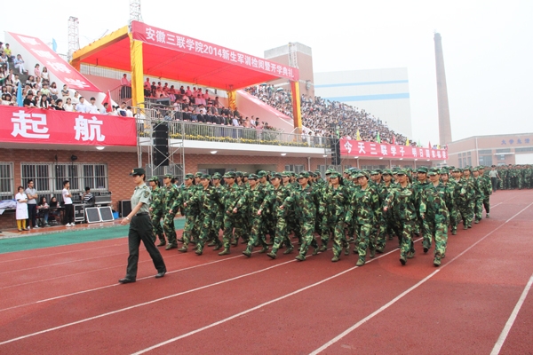 金秋九月,秋风送爽,又到了一年一度的开学季。9月27日上午九时,安徽三联学院2014新生军训检阅暨开学典礼在一校区塑胶体育场隆重举行。