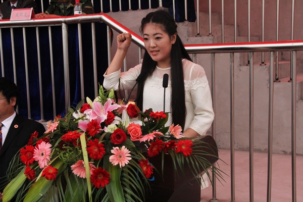 全体新生在校学生会主席董成凤同学的带领下进行宣誓。