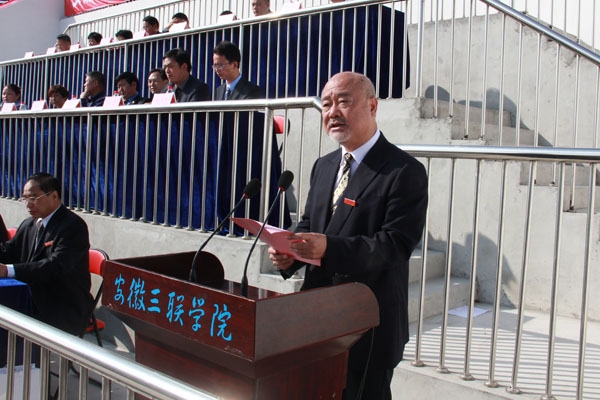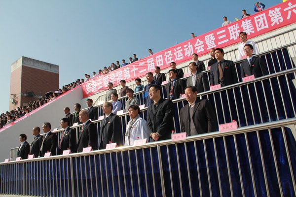10月25日上午9时,安徽三联学院第十二届田径运动会暨安徽三联集团第六届职工运动会在第一校区体育场隆重开幕,安徽三联集团及所属单位领导金会庆、桂宁东、余皖生、金美莲、罗文其、潘涛、朱熔、陈献军、陈建抗等出席开幕式。安徽三联学院校长金会庆教授致开幕词,安徽三联集团执行总裁、安徽三联学院董事长余皖生宣布运动会开幕。开幕式由安徽三联学院副校长王瑞友主持。