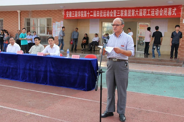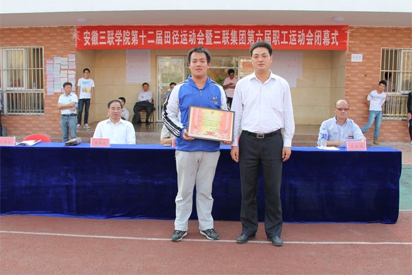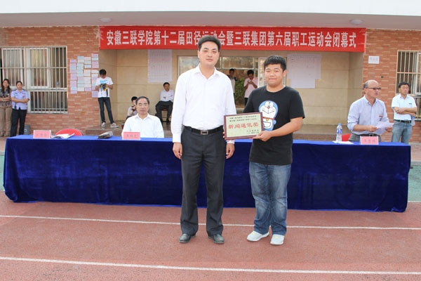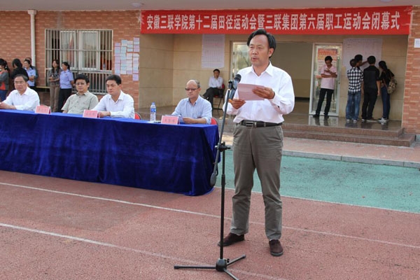 最后,工会主席王坚伟宣布“安徽三联学院第十二届田径运动会暨安徽三联集团第六届职工运动会闭幕”。