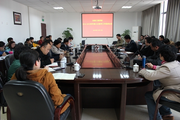11月11日,学校召开2014-2015学年第三次教学工作联席会议。校领导曹艳平、姜发根、操晓峰出席会议。质管办、就业实训处、实验室与设备管理处等单位主要负责人,各教学单位主要负责人和分管教学负责人,教务处相关人员参加会议。会议由副校长姜发根主持。