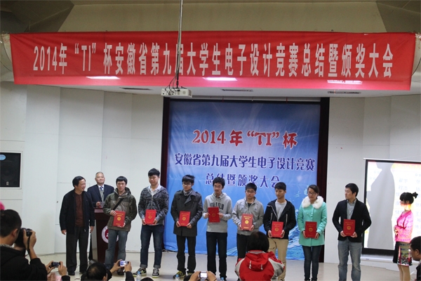 大学生电子设计竞赛是教育部和信息产业部共同倡导和主办的学科竞赛,是面向大学生的群众性科技活动。安徽省从2006年开始举办安徽省电子设计竞赛,逢双年份独立举办,逢单年份与全国竞赛合并举办。今年参加本次比赛的有中国科学技术大学、合肥工业大学、安徽大学等46所高校,共364组参赛队伍、1038名学生参赛。这是我校连续两年在该类赛事中获得安徽省一等奖。