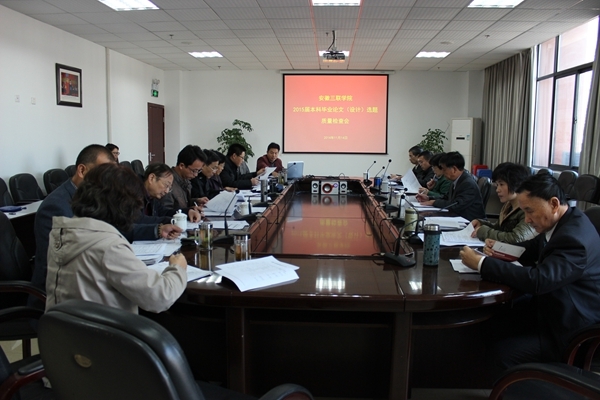 会上,教务处汇报了2015届本科毕业论文(设计)选题检查工作情况:此次主要从选题来源、近三年选题的重复率、题目数和毕业生比例、选题质量等四方面进行检查,分二级学院自查和学校检查两个阶段。