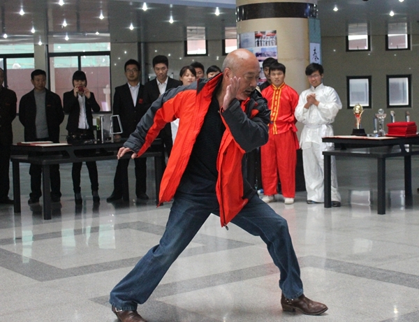 金会庆校长随后也表演了中华传统武术“形意拳”,并与同学们切磋交流技艺。精彩的表演获得了现场师生的热烈掌声,引领了我校积极健身锻炼的运动风尚。