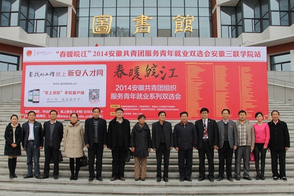 11月26日,由共青团安徽省委、安徽省教育厅、安徽省人社厅、省青年企业家协会联合主办,安徽三联学院、新安人才网承办的“春暖皖江”安徽共青团服务青年就业双选会在我校图书馆广场盛大开幕。