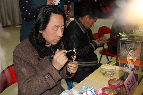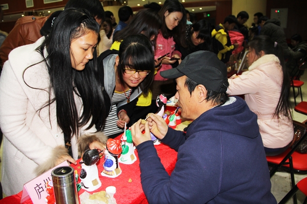 同时,展出的吴山铁字、庐阳剪纸、庐州泥塑、武郎面塑等艺术作品也让师生们赞叹不已。