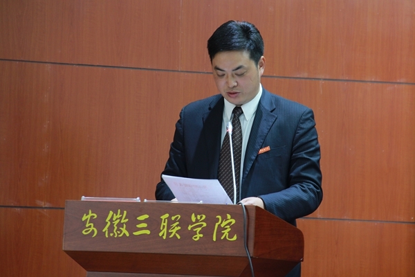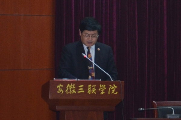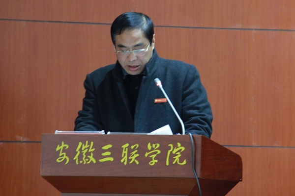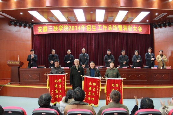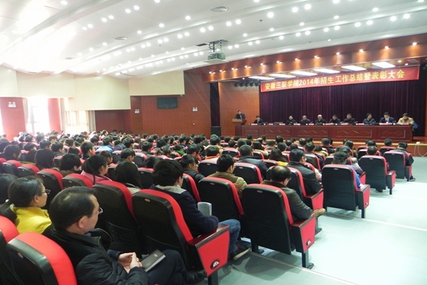 12月30日中午,我校2014年度招生工作总结暨表彰大会隆重举行。安徽三联学院党政领导金会庆、桂宁东、余皖生、鲁先长、秦永元、张树林、曹艳平、王瑞友、姜发根、金哲等出席大会并就座主席台。校长金会庆教授作重要讲话,校党委副书记鲁先长主持大会。