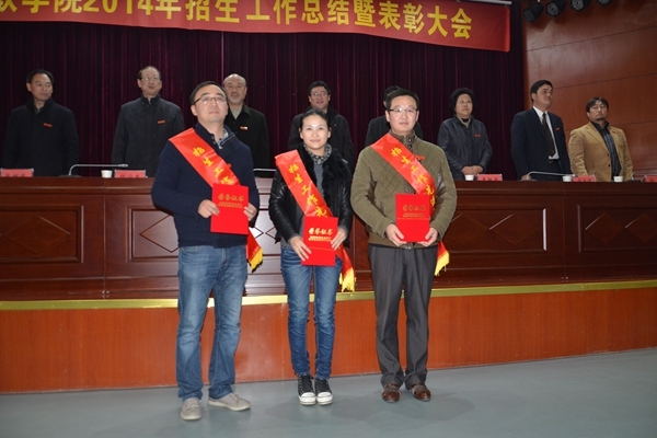 金会庆校长在讲话中对2014年度的招生工作给予了充分肯定,并对此次获得表彰的先进集体和个人表示祝贺,同时提出新年度的招生工作目标,号召全校教职工在这迎评促建的关键时刻,创新工作思路,明确工作目标,迎难而上,为确保以优异成绩通过本科教育教学水平评估而奋斗!为学校更加美好的明天而努力奋斗!