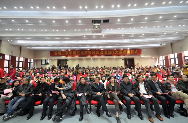 本次动漫艺术节的重头戏之一是校园动漫创作大赛的颁奖仪式,上午10点,颁奖仪式在安徽三联学院图书馆学术报告厅拉开序幕,出席颁奖仪式的嘉宾有上海信息服务业行业协会会长马海湧、日本数字好莱坞大学研究生院教授、国际动漫研究所所长高桥光辉及安徽三联学院和其协同单位联岸信息科技有限公司领导余皖生、鲁先长、张树林、姜发根、金磬、林大卫等。此次校园动漫创作大赛是面向全校的大型动漫创作比赛与人才培养活动,旨在发现动漫创意人才,为热爱生活、热爱动漫的漫迷们提供一个展现自我才华的平台,带动动漫在学生群体的快速、健康发展。