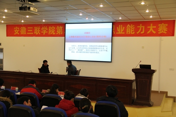为进一步推动我校辅导员队伍的专业化、职业化发展,提高辅导员的职业能力和服务水平,搭建学习、交流的平台,1月26日至28日,“安徽三联学院第二届辅导员职业能力大赛”成功举办。校党委副书记鲁先长出席比赛。