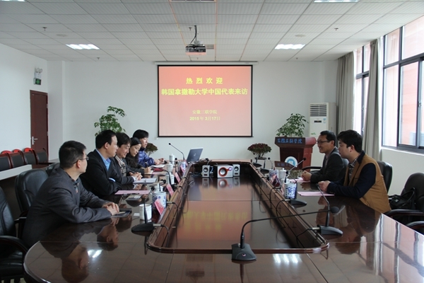 3月17日,韩国拿撒勒大学中国项目协调官奇宗汎一行两人来校商谈合作事宜,副校长金哲,综合办公室、国际交流中心、外语学院等单位相关负责人参加会议。