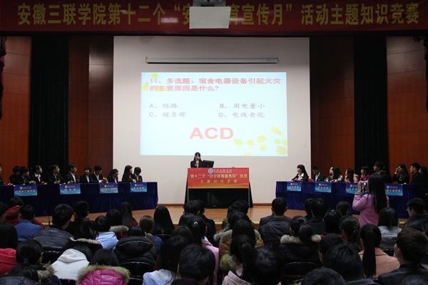 3月20日晚,由校学生会承办的我校第十二个“安全教育宣传月”活动主题知识竞赛决赛在图书馆多功能厅成功举办。校党委办公室、学生处和团委的主要负责人受邀观看比赛,共有来自七个学院的八支代表队参加校级决赛。