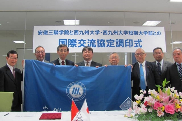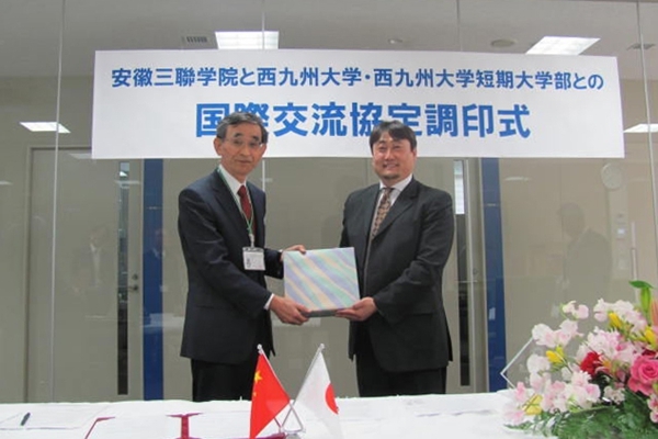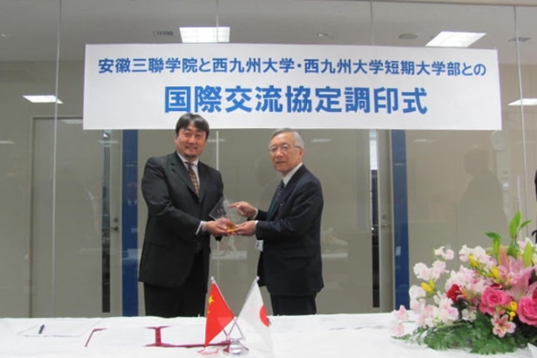 3月23日,安徽三联学院和日本西九州大学的国际交流协议签字仪式在日本西九州大学隆重举行。副校长金哲受金会庆校长委托,代表安徽三联学院参加签字仪式。西九州大学出席签字仪式的有福元理事长,向井校长,古川副校长,井本副校长,西河部长,北岛局长,柳田国际交流委员长以及大学董事会成员。签字仪式之后,双方进行国际化大学的建设,科研和教育的合作,师生交流等事项的探讨。