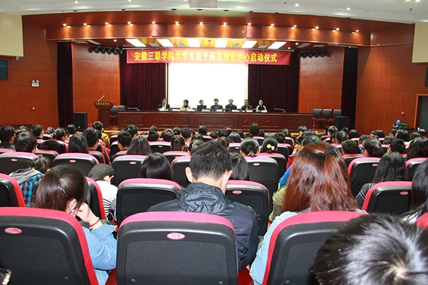 4月15日晚,安徽三联学院大学生电子商务创业中心项目启动仪式暨“中国梦·三联行”专题报告会在校图书馆学术报告厅隆重举行。我校特邀阿里巴巴全球十大网商蝶恋品牌服饰CEO崔万志先生担任此次专题报告会主讲人。蝶恋服饰副总经理崔文礼、校党委副书记鲁先长、副校长王瑞友及计算机工程学院、团委、就业创业处等部门负责人出席活动。