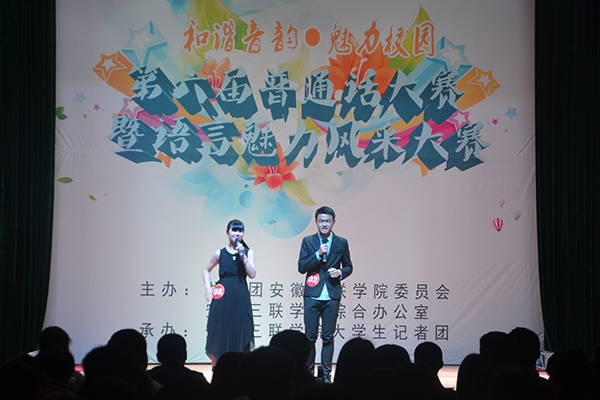 为积极响应国家推广普通话的号召,营造活泼文明的校园文化氛围,展现当代大学生良好的综合素质,4月24日晚,由校团委、校综合办主办,大学生记者团承办的安徽三联学院第六届普通话大赛暨语言魅力风采大赛在图书馆多功能厅成功举办。本届普通话大赛以“和谐音韵,魅力校园”为主题,校党委副书记鲁先长出席本次大赛,安徽青年报、中国日报、市场星报等多家媒体受邀作为大赛嘉宾。合肥论坛、合肥热线、校团委等相关领导担任本次大赛评委。