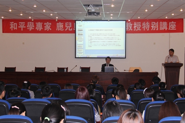 2015年5月8日下午,日本和平专家鹿儿岛大学木村朗教授应邀赴我校进行以“和平”为主题的专题讲座。讲座由副校长、亚洲文化研究中心副主任金哲博士主持。这是我校亚洲文化研究中心组织的首场讲座,木村朗教授现场还向外语学院赠送了书籍。(撰稿:梅琳 摄影:隋欣 编辑:孙佼佼)