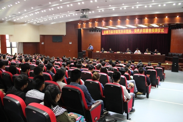 李明阳书记在仪式上发表重要讲话,要求学校全体党员:一、要充分认识开展示范岗、示范宿舍创建活动的重要意义。开展“党员示范岗”、“党员示范宿舍”创建活动是加强基层党组织建设、党员队伍建设、校风学风建设和宿舍文化建设的有效形式,更是结合学校实际不断推进党建工作的有效载体。对充分发挥党员的模范带头作用,不断增强党组织凝聚力战斗力,切实提升党员和师生精神面貌,推动学校又好又快发展和广大同学全面成才成长具有十分重要意义。二、要珍惜荣誉,勤奋学习,努力工作,切实发挥示范引领作用。党员示范岗、党员示范宿舍既是一种肯定和荣誉,更是一种责任和鞭策。希望示范岗、示范宿舍的党员要珍惜荣誉,勤奋学习,努力工作,进一步提高责任意识和服务意识,加强党性锻炼,提高自身修养,为党旗增添光彩。三、要认真抓好落实,扎实推进活动,努力营造创先争优的良好氛围。各基层党组织和相关部门要高度重视创建活动,不断发挥党组织战斗保垒作用和党员先锋模范作用。要紧密联系实际,把创建活动与培育践行社会主义核心价值观、校园精神文明建设、创建平安校园、迎评促建等活动有机结合起来,营造“和谐、健康、向上”的育人环境。