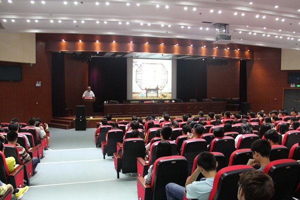 金校长首先以安徽电视台《安徽人——下海科学家金会庆》栏目的一段视频展现了他的传奇人生,一个在海外街头刷盘子、炒栗子的小伙是如何逐步达到今天的成就。现场的每位听众无不被金校长的信心决心、超前的思想、惊人的毅力所折服。视频播放结束后,金校长从成功与挫折两个角度阐述了他对人生观的独特见解。什么是人生观?金校长认为人生观就是对生命的尊重,最重要的是“把自己过好了,别给别人添麻烦,每天过得开心”。在谈到什么是成功时,金校长指出成功不是一定要做出伟大的事业,它可以是“你在这次考试中比上次多考几分,也可以是你成功的约到了你心仪的女生”等等,每一次小事的完成都可以当成成功。金校长贴近生活、贴近实际的讲解受到了在座学生们的积极响应。紧接着,金校长重点介绍了什么是挫折。他指出一个人抵抗挫折、承受挫折的能力即逆商对能否取得成功起着至关重要的作用。在通往成功的路上,智商占到20%,情商和逆商占到80%。而如何很好的控制挫折?则需要在正确责任归属的同时控制好时间范围。