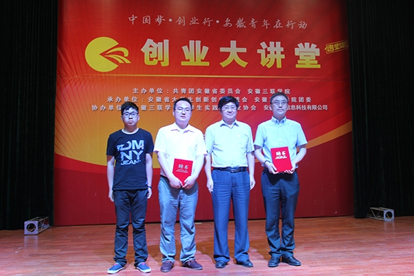5月15日,由共青团安徽省委员会、安徽三联学院主办,安徽省大学生创新创业促进会、安徽三联学院团委共同承办的中国梦·创业行·安徽青年在行动—安徽三联学院创业大讲堂在图书馆多功能厅隆重举行。校党委副书记鲁先长、团省委学校部副部长徐波出席了此次大讲堂,省大学生创新创业促进会企业代表、各学院团总支书记以及我校500余名学子参加。本次大讲堂由校团委副书记李燕主持。