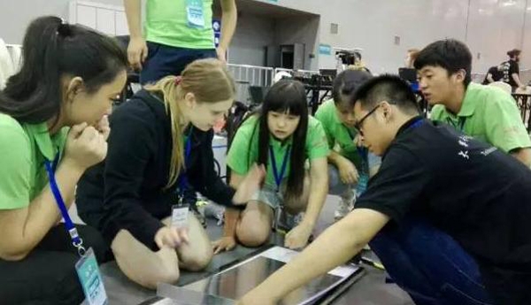 7月17日上午,国内外众多参赛队陆续抵达赛场进行赛前调试。我校志愿者主动承担起会场翻译、现场引导、物资提供等服务。志愿者们的热情与专业服务受到国内外参赛选手的一致好评。副市长王翔莅临现场看望志愿者时还与我校志愿者代表吴琦同学合影,对我校志愿者工作给予了高度的肯定。