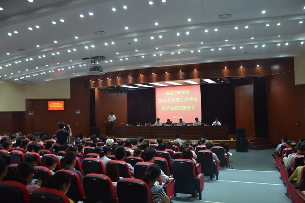 为贯彻落实国务院“引导部分地方本科高校向应用型转变”的战略部署和深化高校综合改革的发展要求,推进工程教育教学改革,进一步深化人才培养模式改革,巩固评建成果,扎实做好评估整改工作,8月31日,我校2015年教学工作会议暨评估整改推进会在图书馆学术报告厅隆重召开。省教育厅高教处处长储常连博士、安徽工程大学校长刘宁教授和合肥工业大学教务部副教务长张辉教授应邀出席会议并作专题报告,在肥学校全体党政领导、全校副科级及以上管理干部、专业带头人及培养对象、校院两级教学督导、教研室主任、实验中心主任、教师和辅导员代表参加了会议。