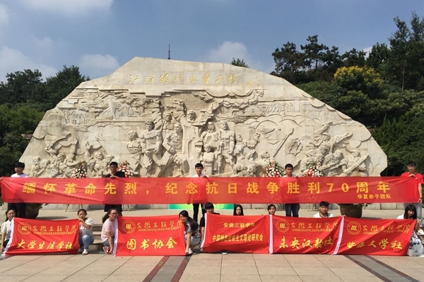 与此同时,各学生社团也积极组织学生前往大蜀山烈士陵园举行纪念活动,向在战争中壮烈牺牲的烈士表示崇高的敬意,献花之后,学生代表带领所有到场三联学子郑重宣誓,掷地有声的宣誓在肃穆的陵园上空久久回荡。
