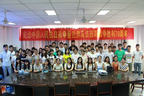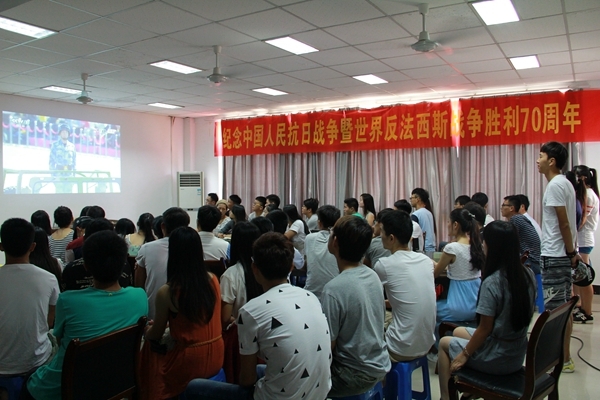9月3日,值此纪念中国人民抗日战争暨世界反法西斯胜利70周年之际,我校主要学生干部自发提前返校,积极组织开展系列纪念活动。上午9点,校院两级学生干部早早集合完毕来到体育场第三会议室集中观看“9.3胜利日大阅兵”现场直播。