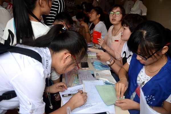 校团委组织的“新生报名咨询处”在A楼大厅为新生提供咨询服务。志愿者们穿着蓝色的小马甲坐在大厅,为自行前来不知道报名事项的新生及家长提供指引。“小马甲”叶盛说:之所以参与此次志愿活动,是因为去年自己报到时得到过志愿者的热情帮助,并希望类似的志愿服务能更好的传承下去。