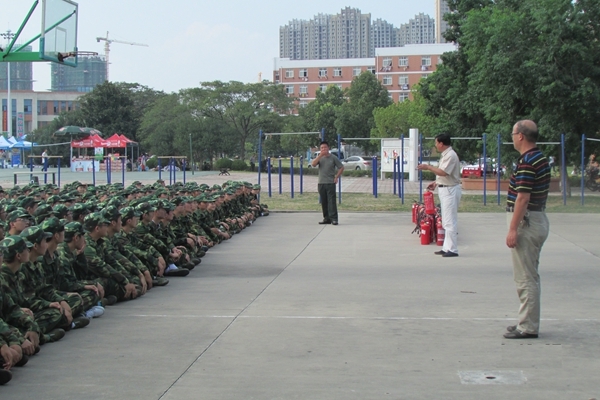 为进一步强化新生的消防安全意识,保卫处于9日下午15:00在新生军训场地开展了一场消防灭火演练活动,来自各二级学院的近百名新生直接参与了实地演习,参加军训的全体新生观摩了本次演习。