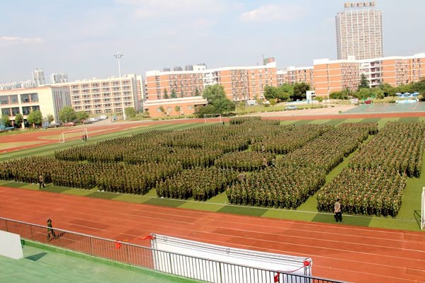 9月10日下午,刻苦训练的同学们在军训结束后,聚集到了训练场中央,校团委主要学生干部现场认真协调组织并与新生们积极互动,飙歌大PK环节引得新生们争相竞技,绿茵场上掌声和笑声不断;经过一个多小时的排序整队和素质拓展后,三个大大的绿色数字映入眼帘。当这片绿海形成的时候,当9.10映入眼帘的时候,当可爱的“小鲜肉”们朝着镜头用力挥手的时候,相信所有老师看到时都会心里一暖吧!